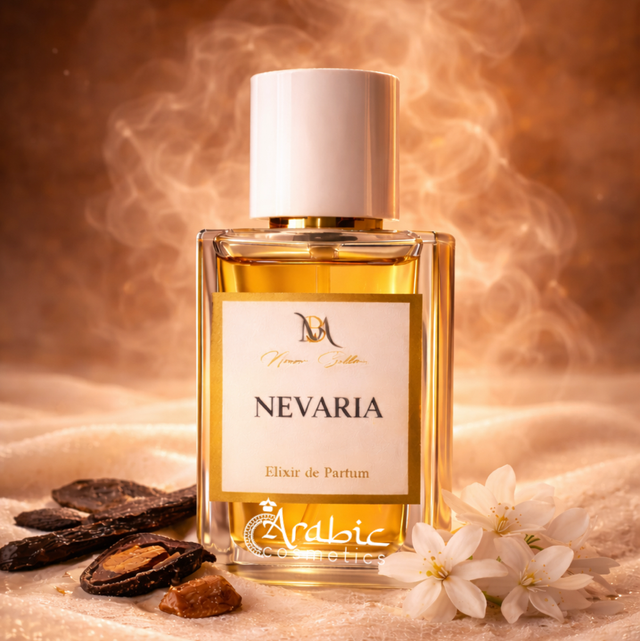 Nevaria est une fragrance intime et enveloppante, pensée comme une seconde peau. L’ouverture lactée et musquée apporte une sensation immédiate de douceur. Le cœur floral, porté par le jasmin et la tubéreuse, s’illumine d’une touche d’encens qui ajoute mystère et profondeur. En fond, la fève tonka, le cacao et la vanille musquée dessinent une empreinte chaleureuse et sensuelle, élégante et durable.